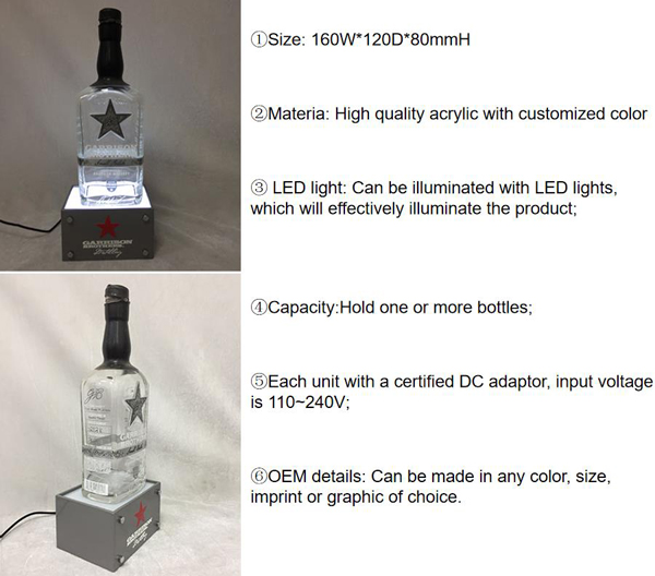 Whisky Alcohol Display Acrylic Bottle Glorifiers LED Light Base Images |